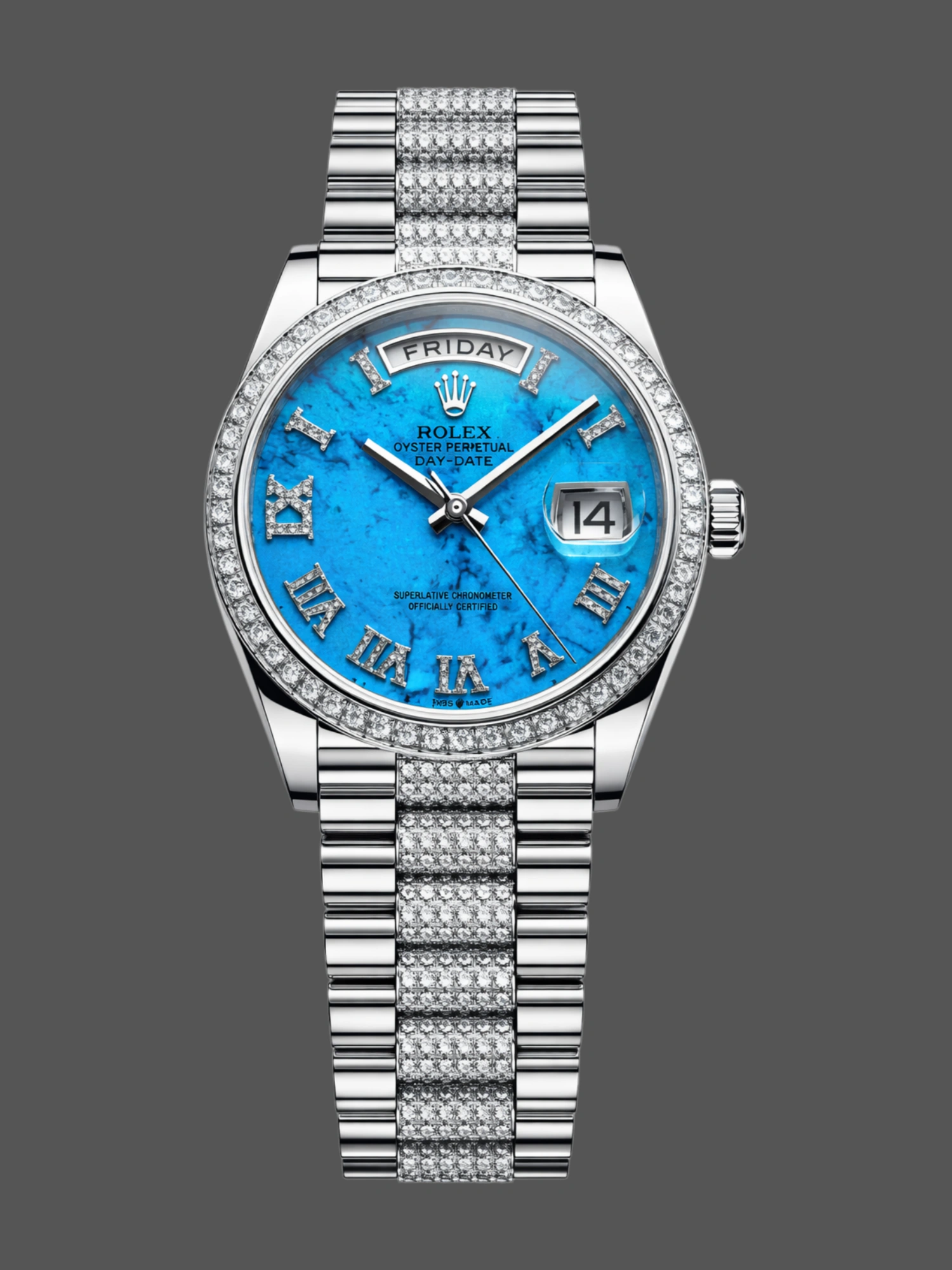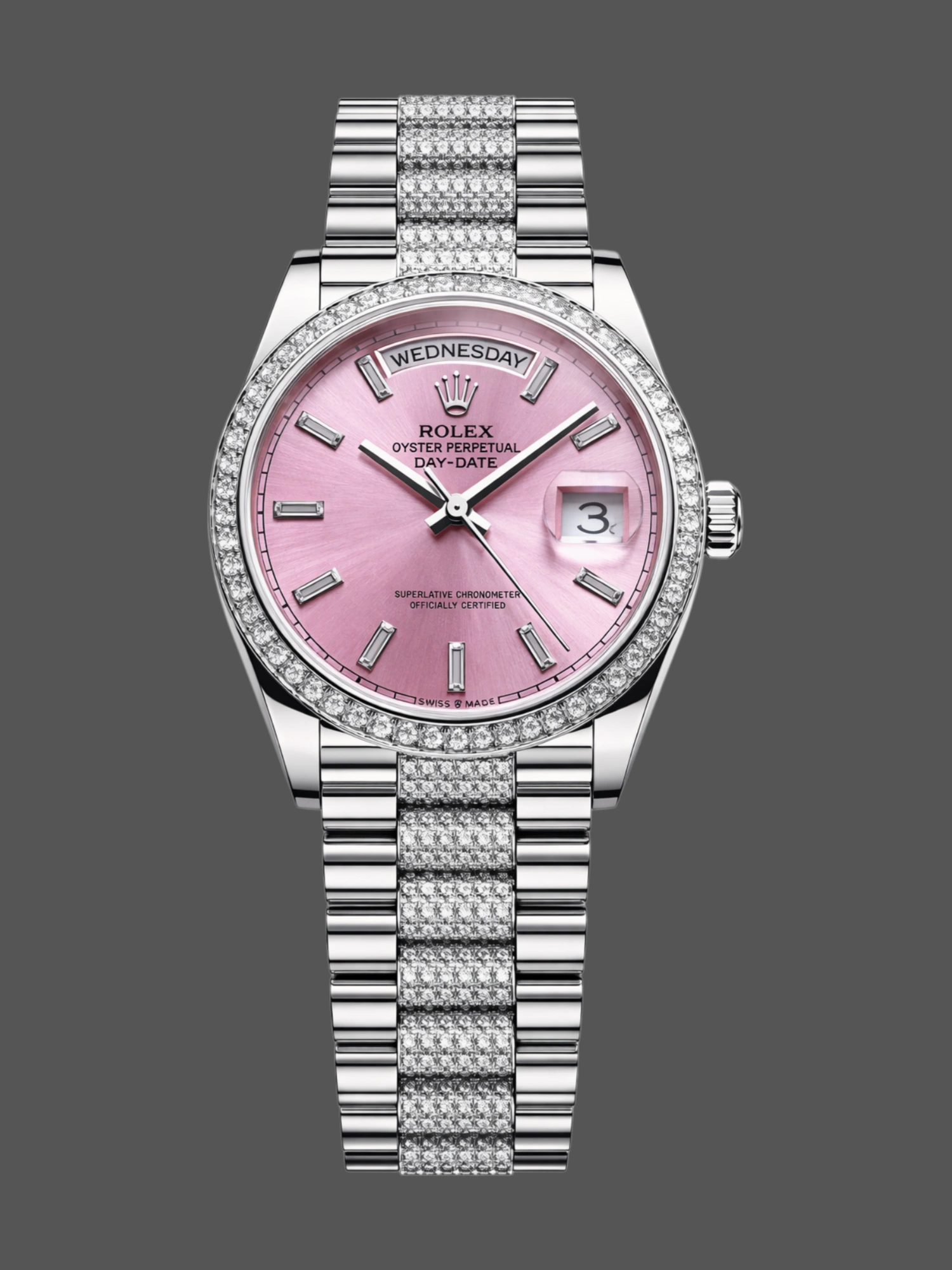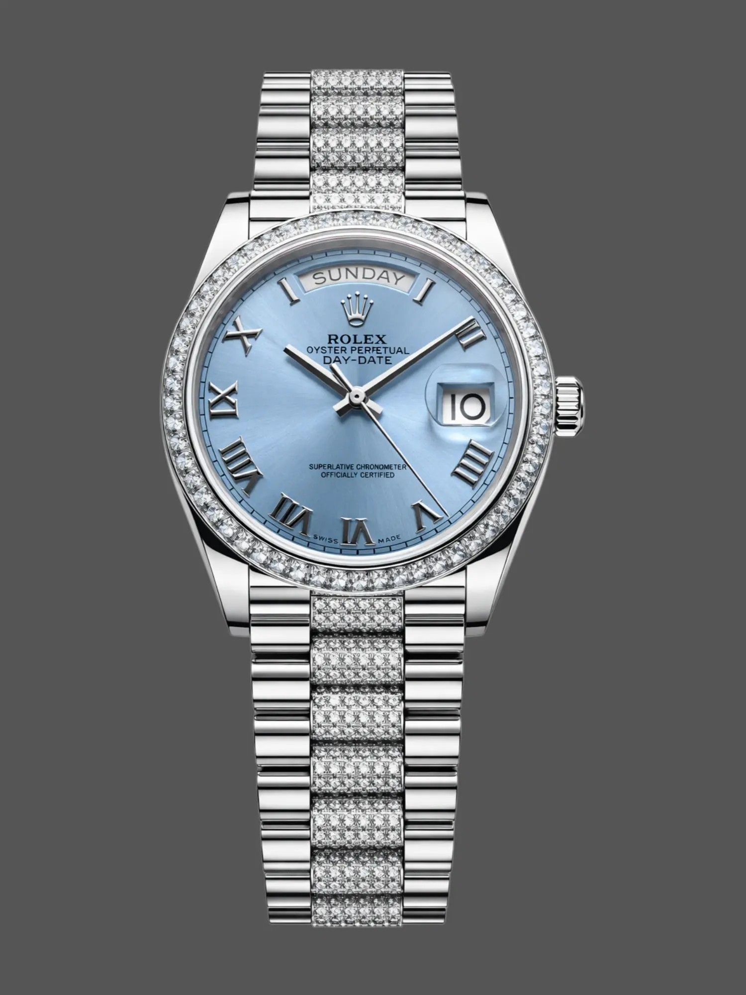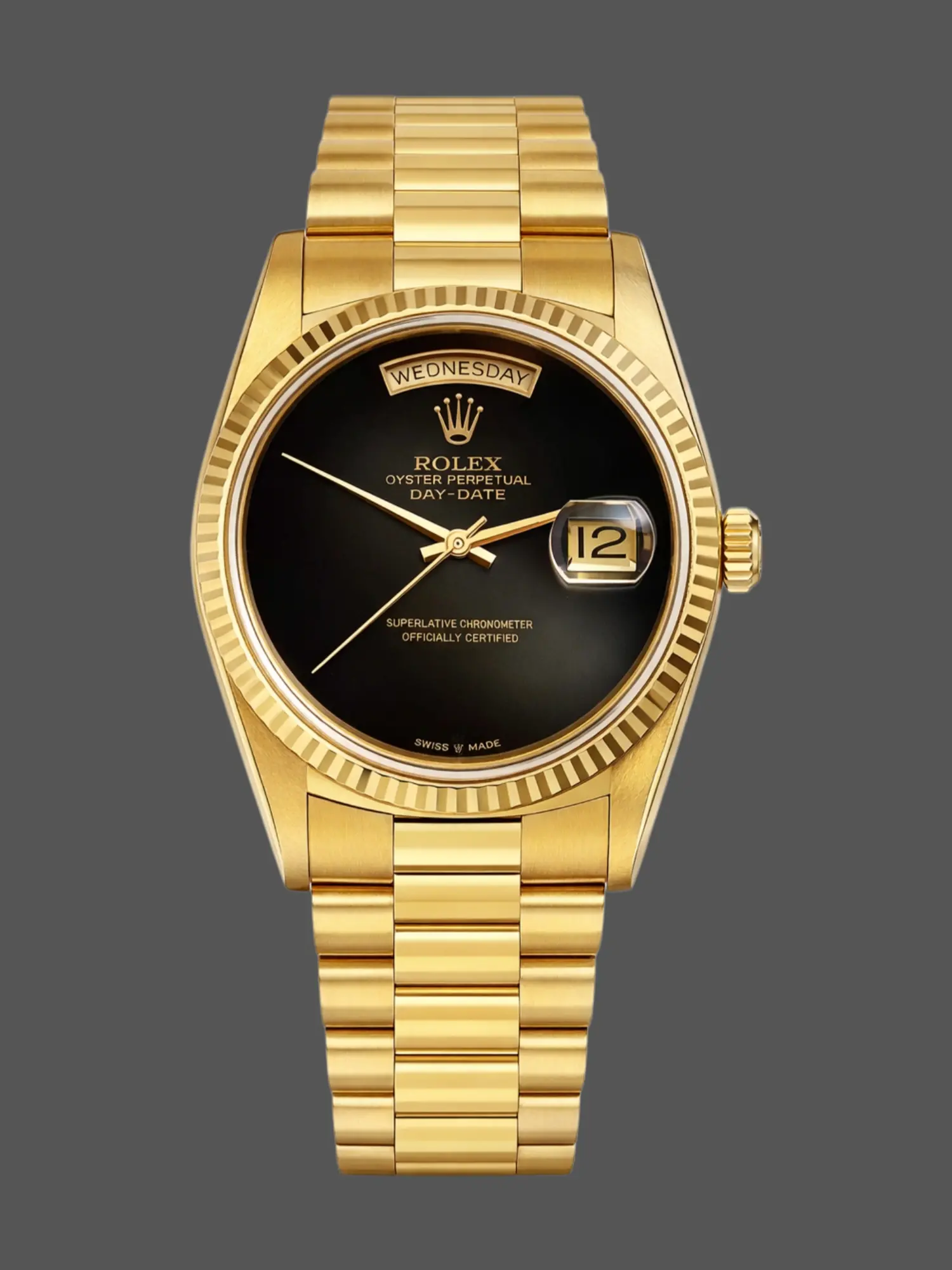 Rolex Day-Date: Our 3255 clone movement makes for efficient operation, accurate timekeeping, and a no-nonsense automatic date-changing mechanism.