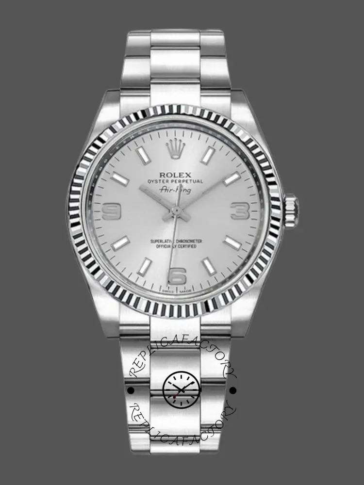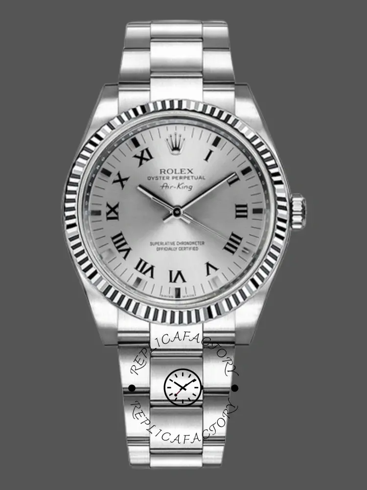 Rolex Oyster Perpetual Air-King 114200 Silver Dial 34mm Unisex replica watch