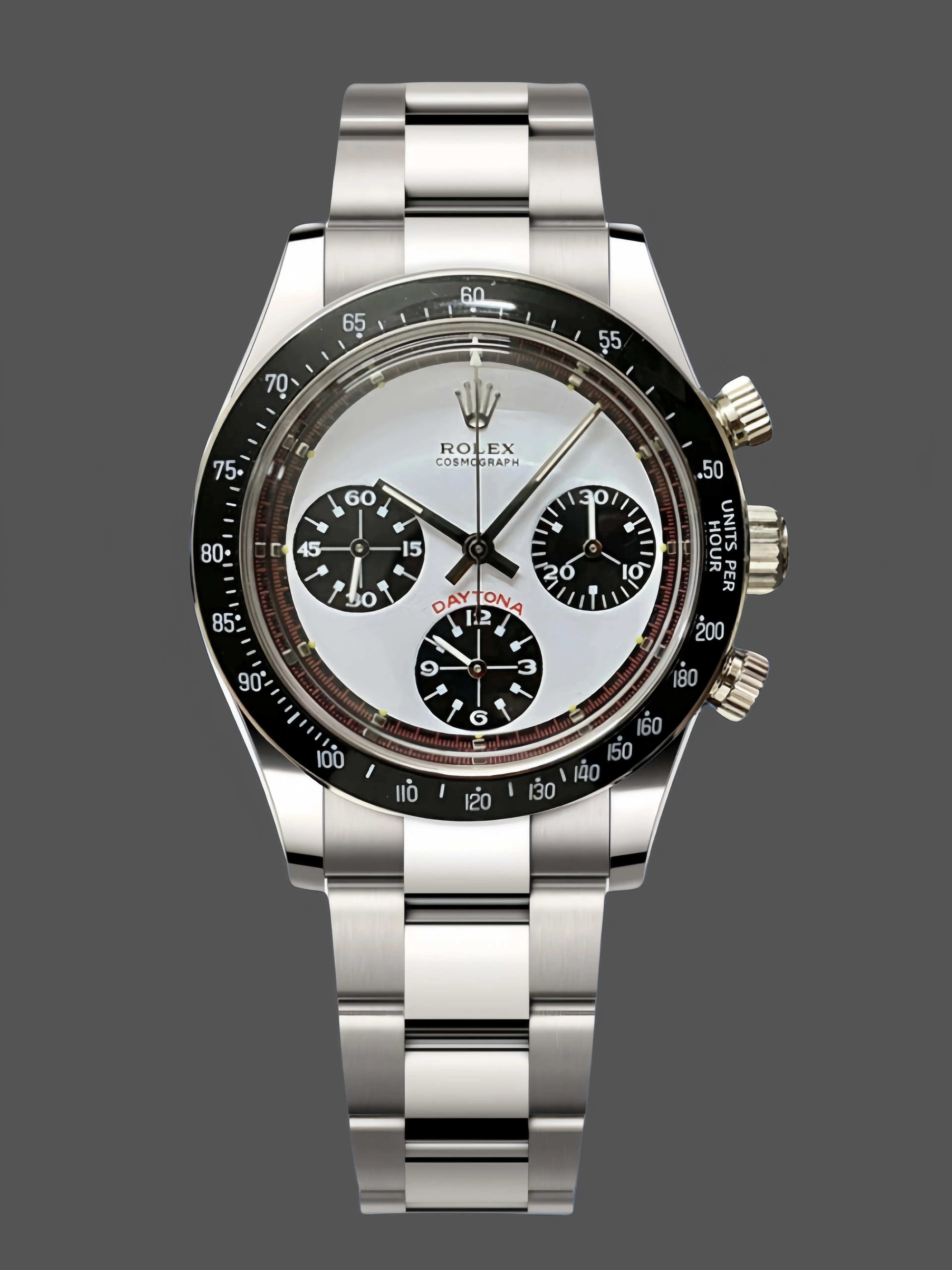 The Daytonas design is clean and timeless, with its five ring layout that includes the ring and three chronograph counters surrounding the minute track—a design thats now iconic for the watch brand Rolex. Collectors especially covet the "panda" design featuring a dial contrasting against a black chronograph counter. Rolex keeps refining the dial aesthetics and color schemes along, with the case structure to emphasize the watchs enduring elegance.