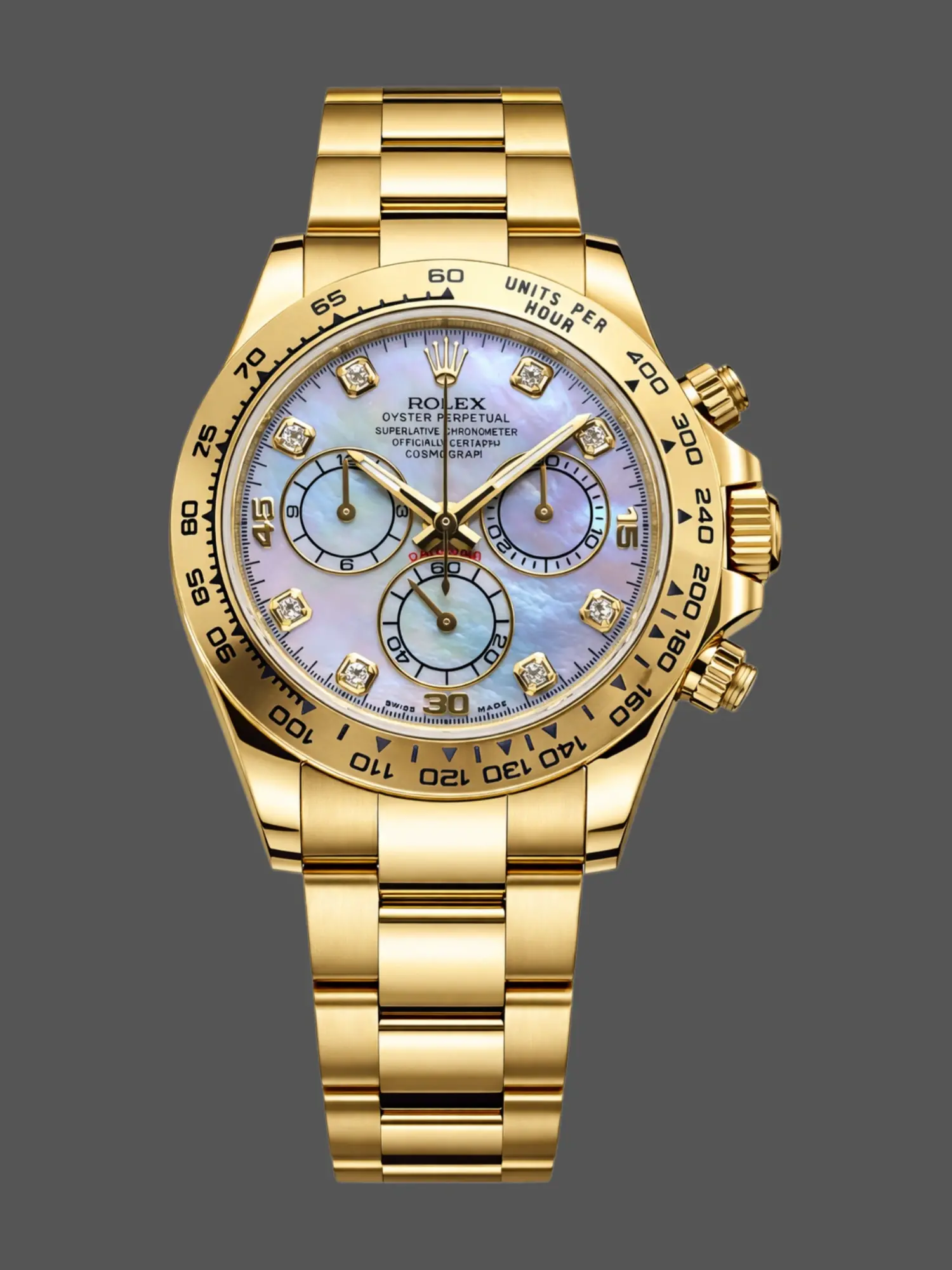 Rolex Daytona 116528 Yellow Gold Mother of Pearl Diamond Dial 40mm Mens Replica Watch