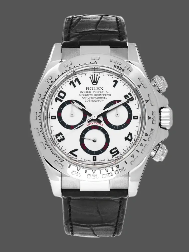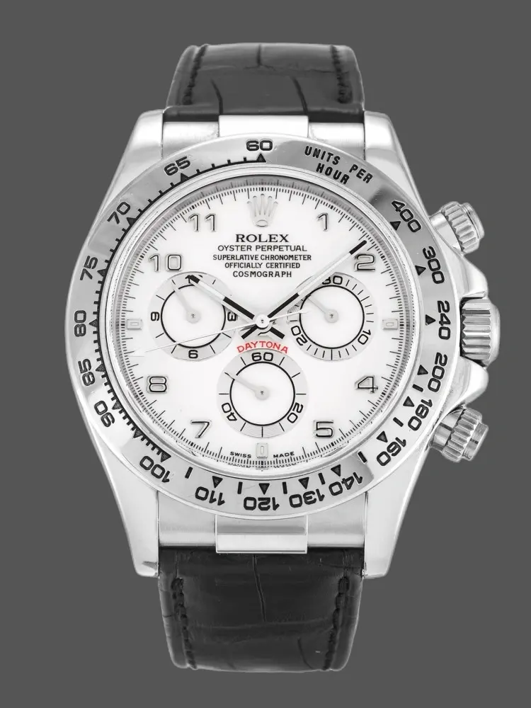 Rolex Daytona 116519 White Arabic Dial Black Leather strap 40mm Mens Replica Watch