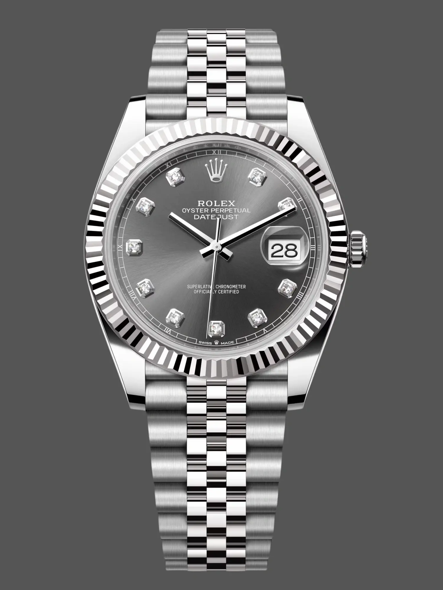 Rolex Datejust 41 Rhodium Diamond Dial Fluted Bezel m126334 0006 Men's Watch