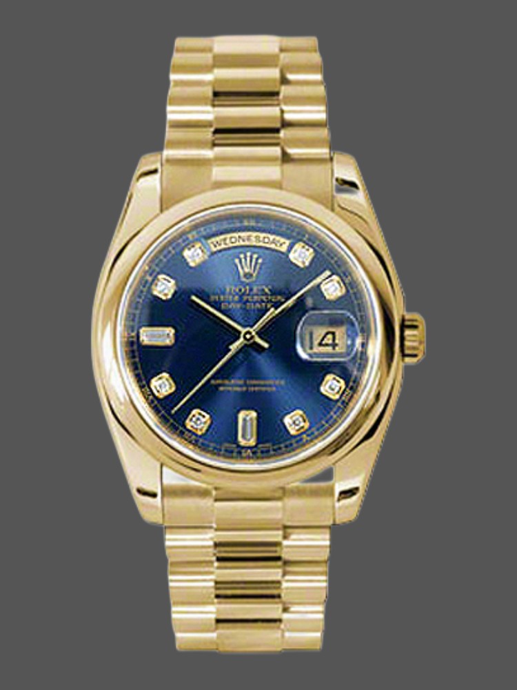 Rolex Day-Date 118208 Yellow Gold Blue Diamond Dial 36mm Unisex Replica Watch