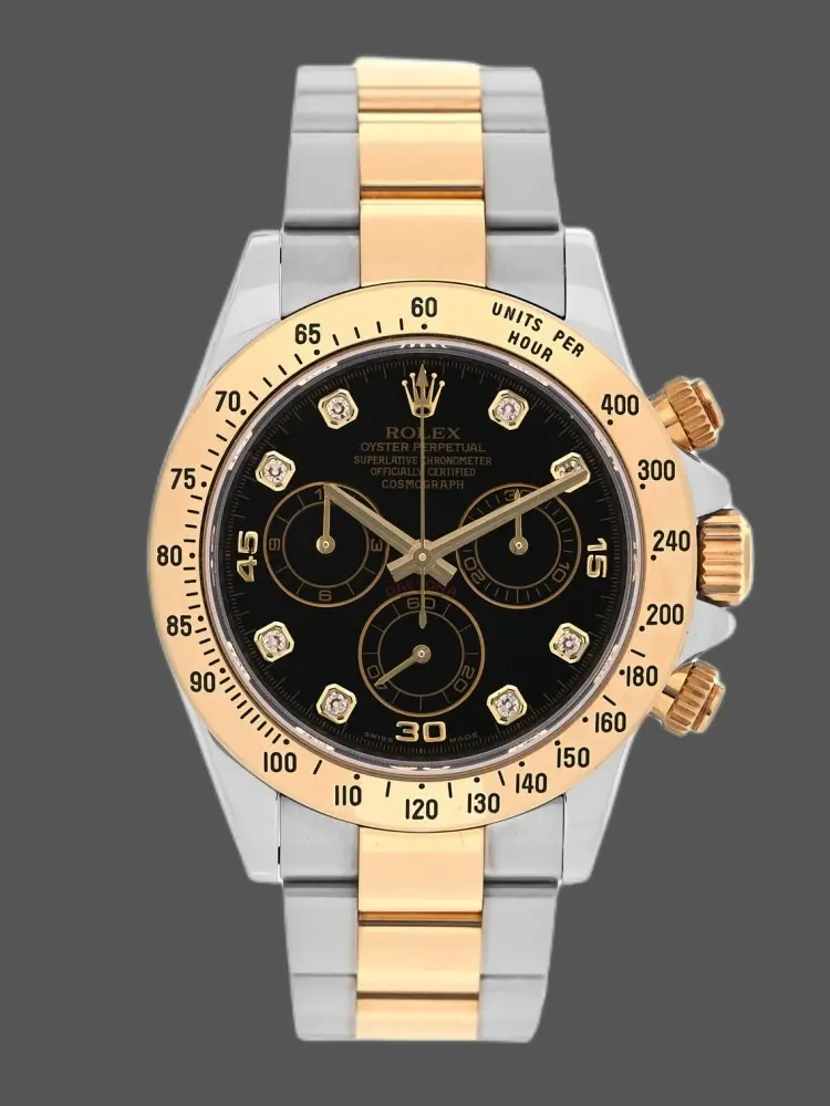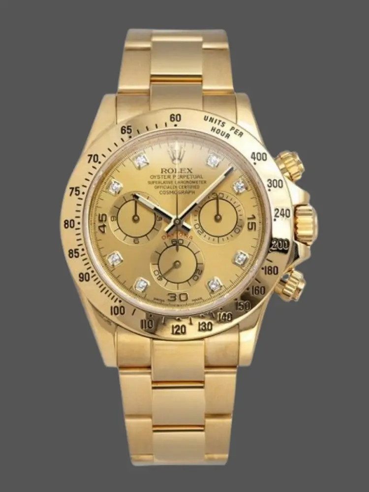 Rolex Daytona 116528 Yellow Gold Champagne Diamond Dial 40mm Mens Replica Watch