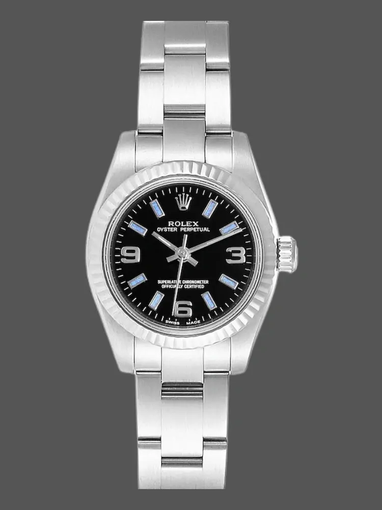 Rolex Oyster Perpetual 177200 Black Index Dial Domed Bezel 31mm Lady Replica Watch