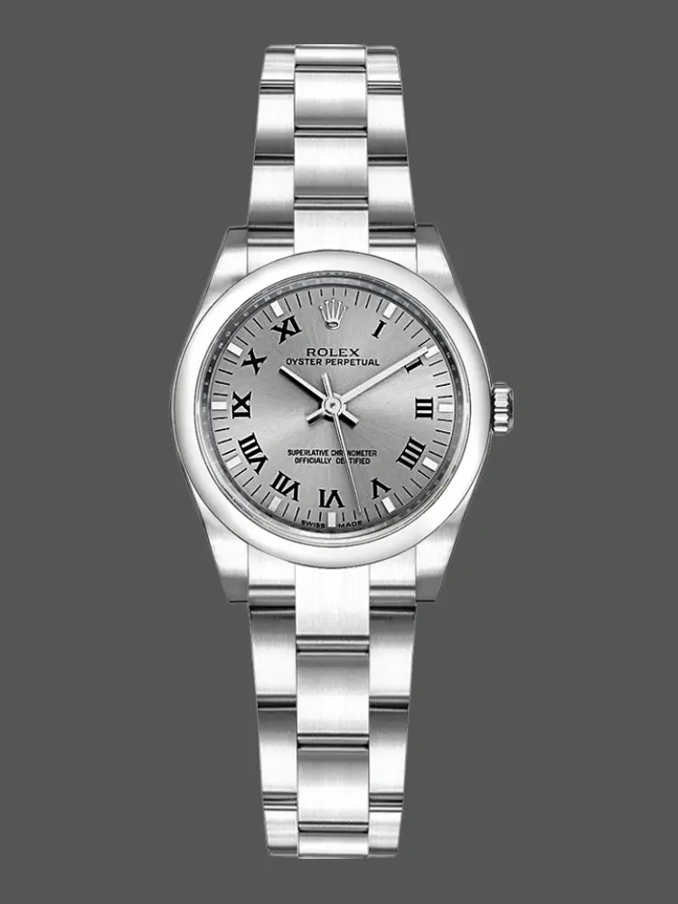 Rolex Oyster Perpetual 176200 Rhodium Grey Roman Numeral Dial 26mm Lady Replica Watch