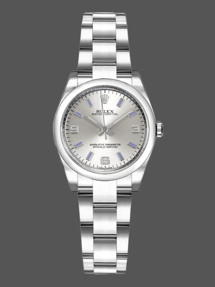 Rolex Oyster Perpetual 177200 Silver Maxi Arabic Dial 31mm Lady Replica Watch