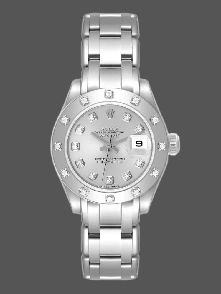 Rolex Pearlmaster 80319 Silver Diamond Dial 29MM Lady Replica Watch