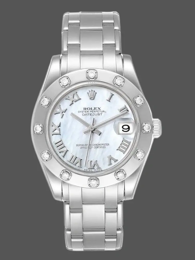 Rolex Pearlmaster 81339 White MOP Diamond Dial 34mm Lady Replica Watch
