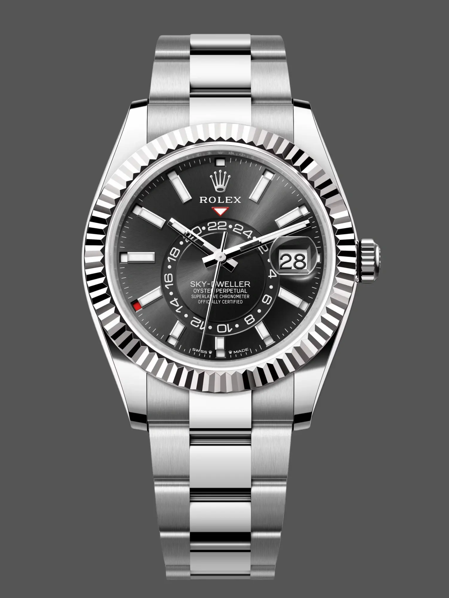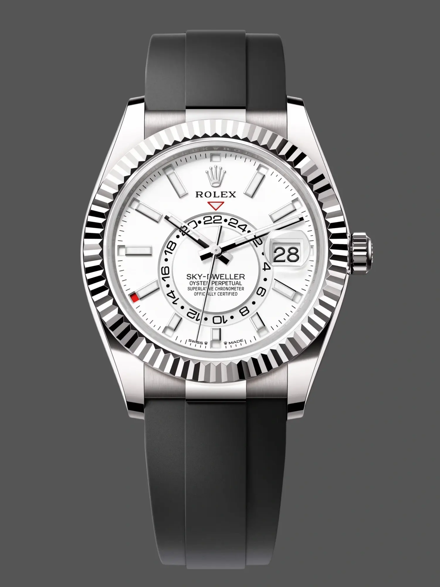 Rolex Sky Dweller 42 White Gold Fluted Bezel 336934 0002 Men's Watch