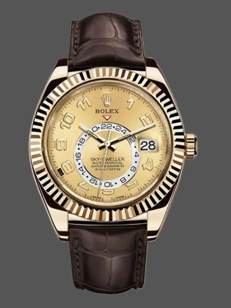Rolex Sky-Dweller 326138 Champagne Dial Yellow Gold 42MM Mens Replica Watch