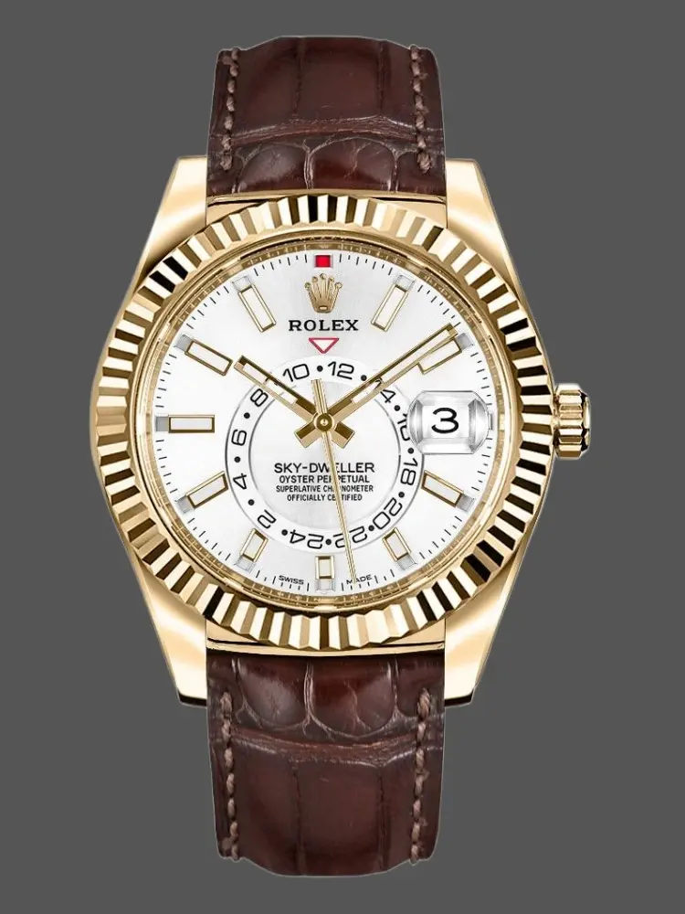 Rolex Sky-Dweller 326138 White Dial Yellow Gold 42MM Mens Replica Watch