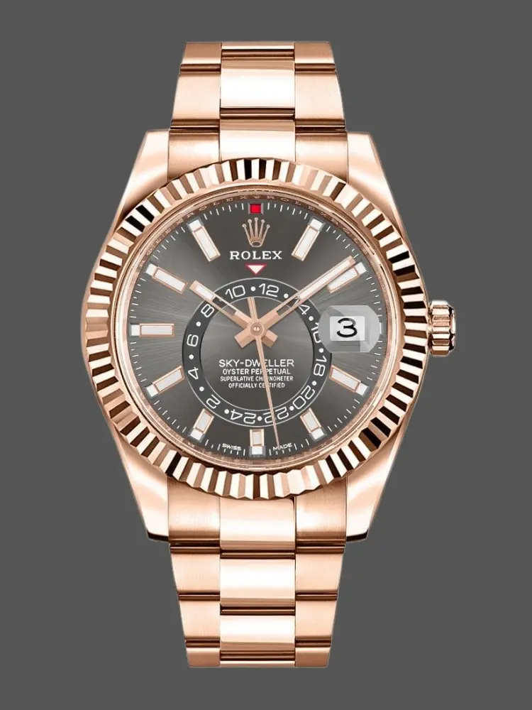 Rolex Sky-Dweller 326935 Everose Gold Dark Rhodium Stick Dial 42mm Mens Replica Watch