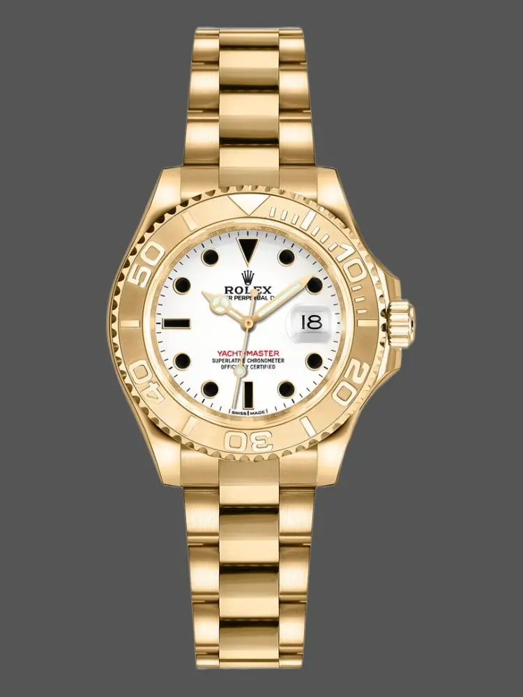 Rolex Yacht-Master 169628 Yellow Gold White Dial 29MM Lady Replica Watch