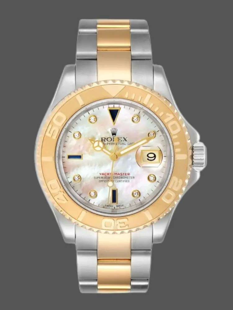 Rolex Yacht-Master 168628 White MOP Dial Yellow Gold 35MM Unisex Replica Watch