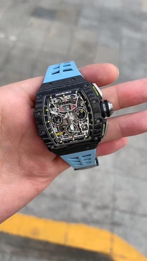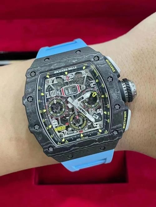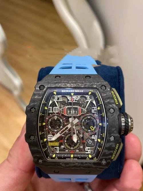 Brand: Richard Mille Range: RM 011 Model Number: RM 011-03 Gender: Mens Movement: Automatic Crystal: Scratch Resistant Sapphire Case Diameter: 40 x 50 MM Case Color: Black Case Material: Titanium Power Reserve: 50 Hours Crown: Screw Down Dial color: Skeleton Dial Type: Arabic Numerals Band color: Blue Band Material: Rubber Strap Clasp: Folding Clasp Water_resistance: Asian:life waterproof, Swiss: 30 meters, Top: 100 m Availability: Item is in stock Return Policy: If you are not satisfied with our product, please return your watch within 30 days for a full refund. Return Terms. -