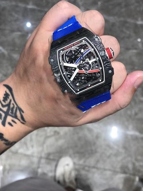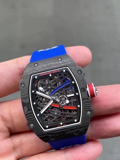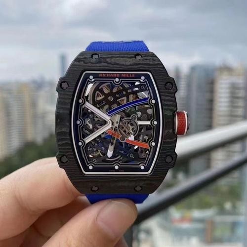 Brand: Richard Mille Range: RM 067 Model Number: RM 67 02 Gender: Mens Movement: Automatic Crystal: Scratch Resistant Sapphire Case Diameter: 39.6 x 48.6 mm Thickness: 16.5mm (Weight:61g) & 7.8mm (Weight:36.1g) Case Color: Black Case Material: Carbon Power Reserve: 50 Hours Crown: Screw Down Dial color: Black Dial Type: No Numerals Band color: Blue Band Material: Fabric Strap Clasp: Ring buckle Water_resistance: Asian:life waterproof, Swiss: 30 meters, Top: 100 m Availability: Item is in stock Return Policy: If you are not satisfied with our product, please return your watch within 30 days for a full refund. Return Terms. -